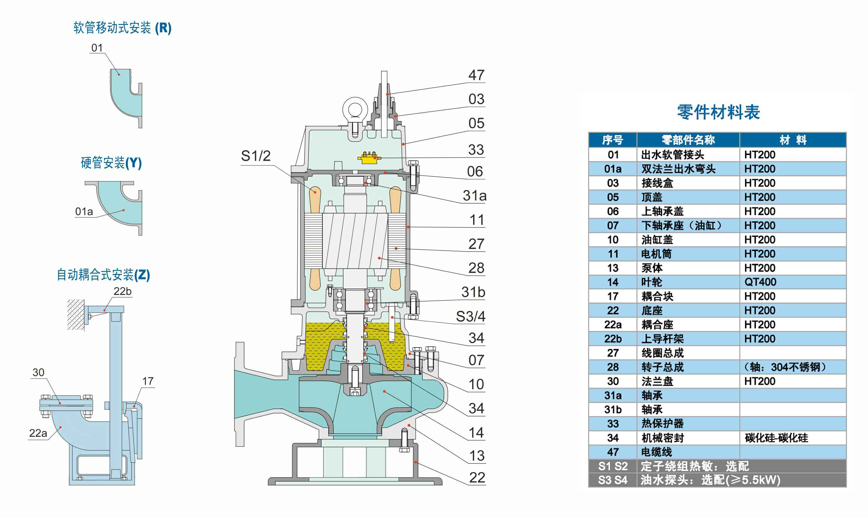 WQ双流道潜水排污泵 2.2~7.5kW 四极